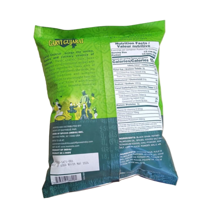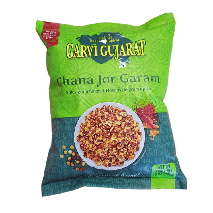 Garvi Gujarat Chana Jor Garam 285g offers a traditional Indian snack made from flattened, spiced black chickpeas. This savory treat delivers a balanced blend of tangy and spicy flavors, perfect for adding a crunchy, flavorful bite to your day. Its convenient 285g packaging ensures freshness and easy sharing, ideal for snacking or garnishing dishes with authentic regional taste from Gujarat.