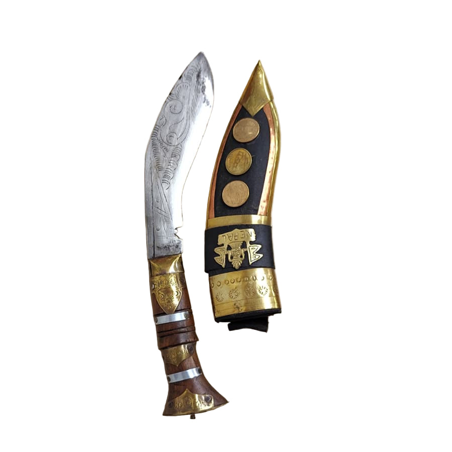 The Khukuri is a traditional Nepalese curved blade renowned for its distinctive forward-angled design, which makes it both an effective tool and a formidable weapon. Crafted with precision, it excels in chopping and slicing tasks, offering superior balance and control. Ideal for outdoor enthusiasts, collectors, and those appreciating craftsmanship rooted in heritage, the Khukuri embodies durability and versatility passed down through generations.