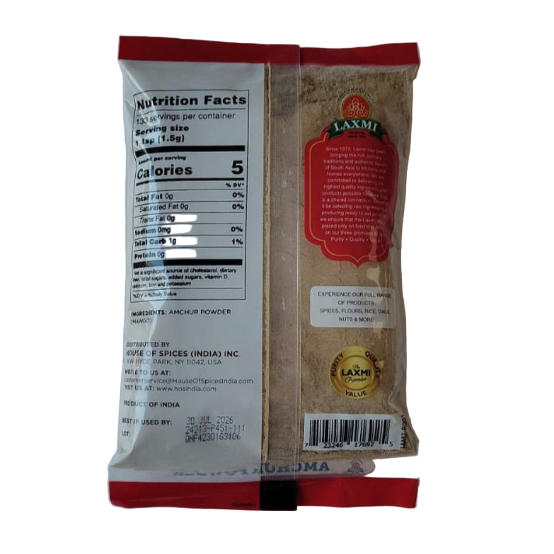 Laxmi Amchur Powder 200 g offers a pure, finely ground mango powder used widely in Indian cooking to add a tangy, citrusy flavor. This 200-gram pack is ideal for enhancing your dishes with a natural sourness, balancing spices and enriching marinades, chutneys, and curries. Expertly processed to preserve aroma and freshness, it provides an authentic taste that elevates traditional recipes with subtle acidity and complexity. Perfect for chefs seeking consistent quality and vibrant flavor in their culinary creations.