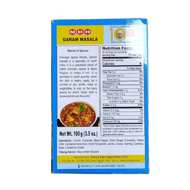 MDH Garam Masala 100g offers a perfectly balanced blend of traditional Indian spices, expertly ground to enhance the flavor of your dishes. This versatile spice mix adds warmth and depth to curries, stews, and marinades, elevating everyday meals with authentic aroma and complexity. Packaged in a convenient 100g size, it maintains freshness and potency for consistent culinary results.